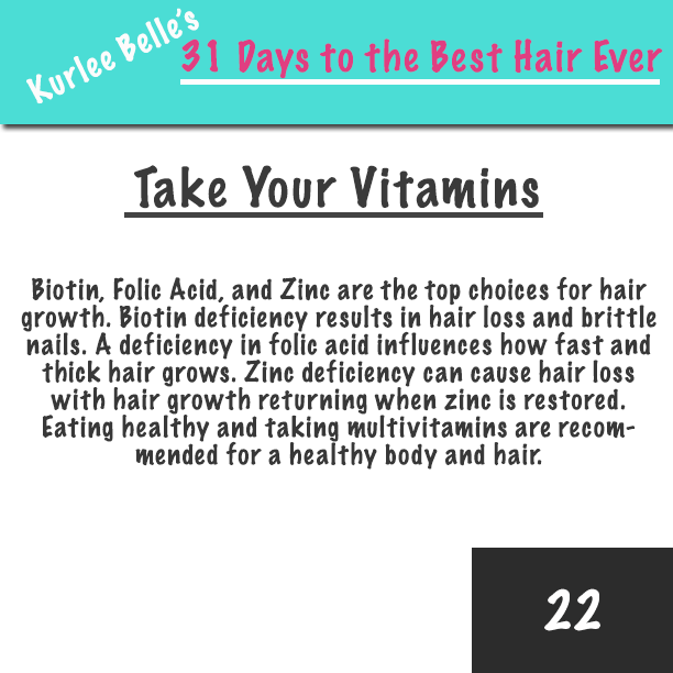 Biotin, Folic Acid, and Zinc are the top choices for hair growth. Biotin deficiency results in hair loss and brittle nails. A deficiency in folic acid influences how fast and thick hair grows. Zinc deficiency can cause hair loss with hair growth returning when zinc is restored. Eating healthy and taking multivitamins are recommended for a healthy body and hair.